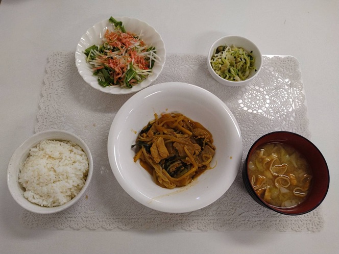 豚プルコギ風・ザーサイねぎ和え・大根と水菜のサラダ