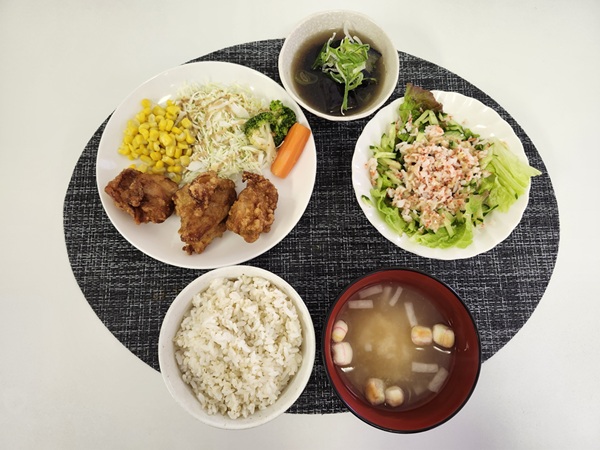 天津丼・高野豆腐の含め煮・タラモサラダ・味噌汁