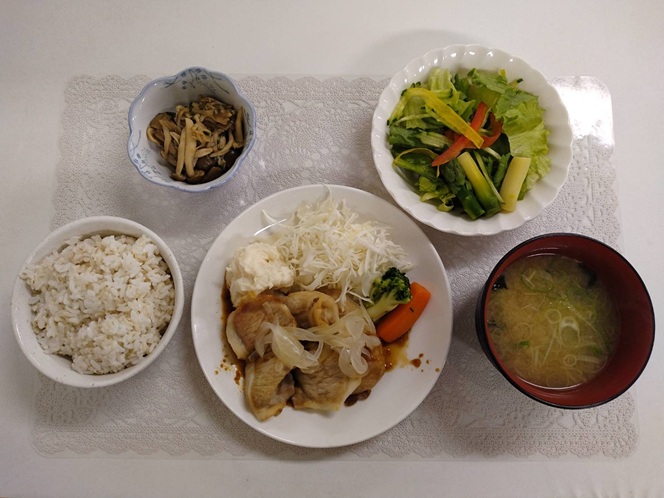 豚生姜焼き・フレッシュサラダ・きのこ梅肉和え