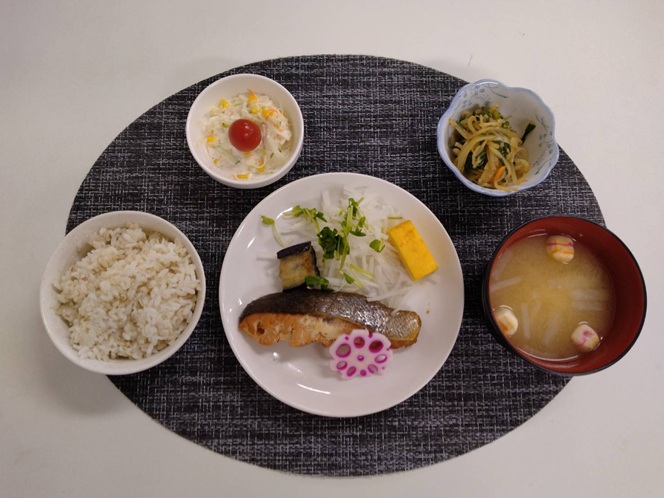 鮭みりん焼き・もやしニラ炒め・コールスローサラダ