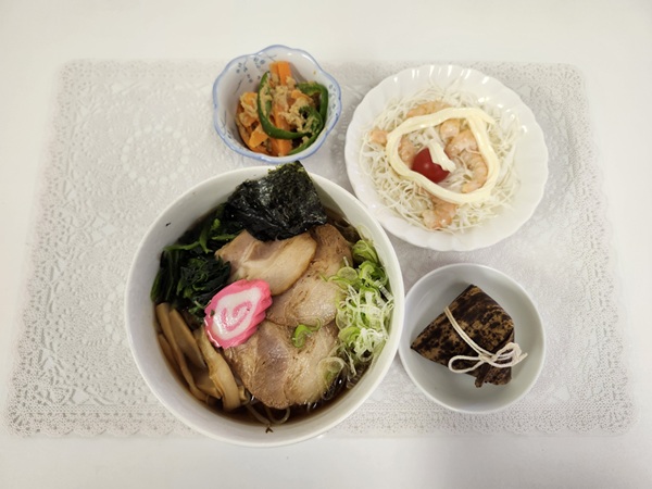 チャーシュー麺・人参ツナ炒め・エビマヨ・ちまき