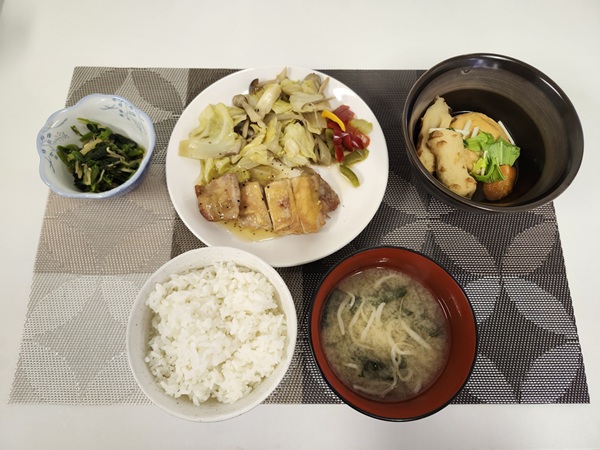 鶏とピーマンの塩炒め・がんもとちくわの煮物・ほうれん草のナムル