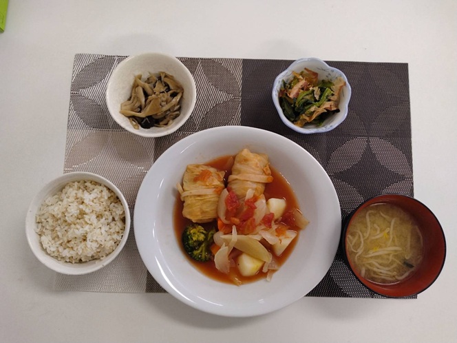 ロールキャベツ~トマト煮~・きのこソテー・あさりと小松菜の和え物